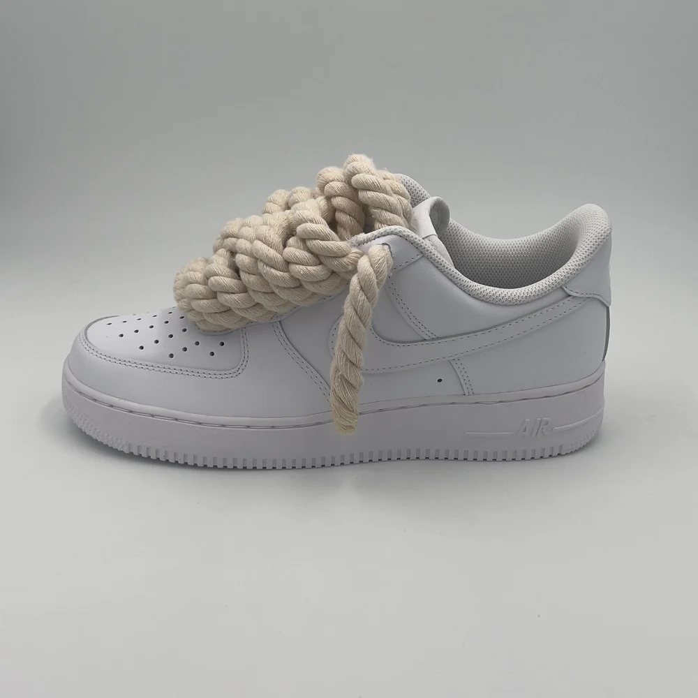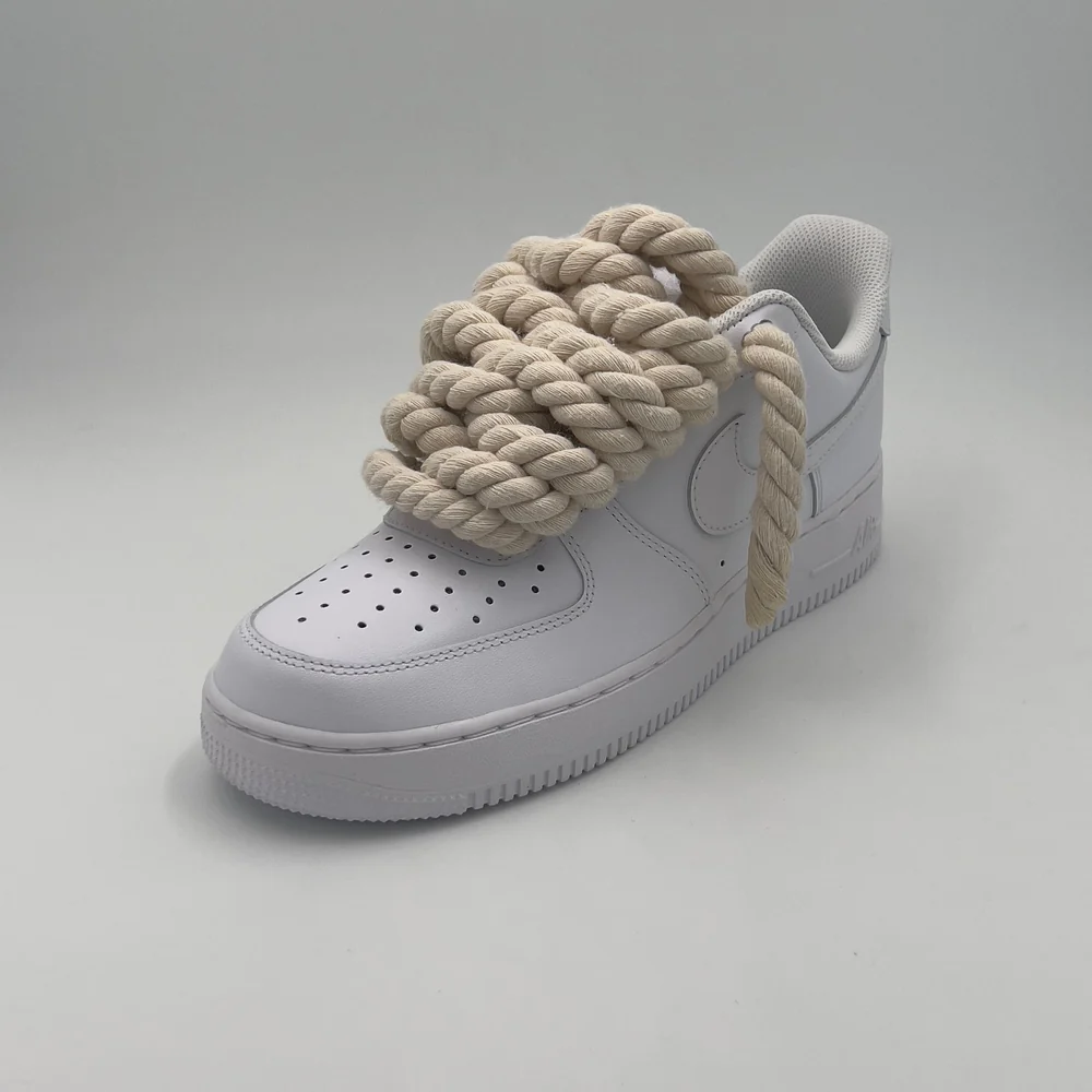Immergiti nello stile distintivo delle nostre Nike Air Force 1 personalizzate, caratterizzate da un tocco unico: lacci spessi in colorazione Cream con estremità in plastica per evitare sfilacciamenti indesiderati.