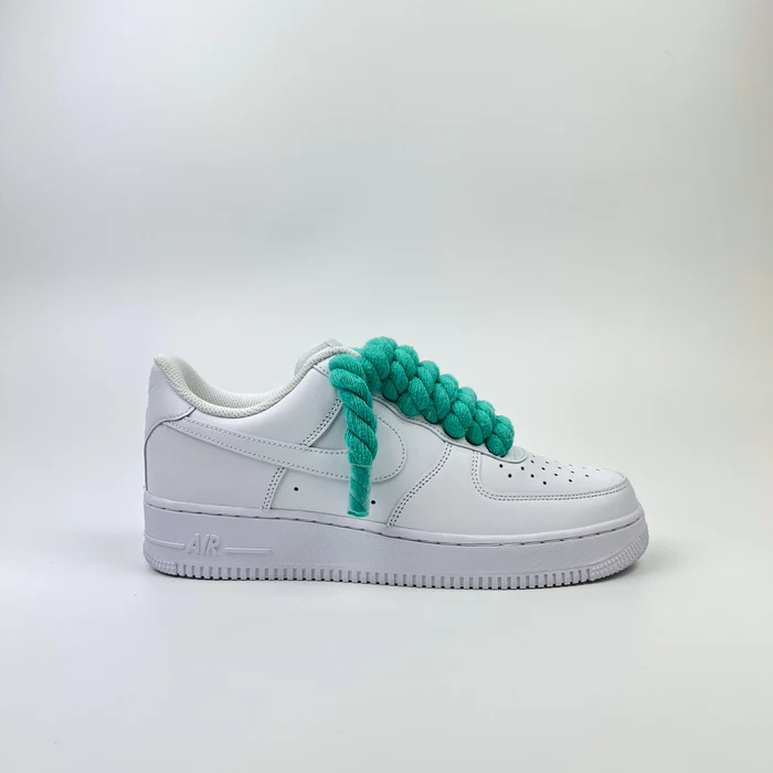 Immergiti nello stile distintivo delle nostre Nike Air Force 1 personalizzate, caratterizzate da un tocco unico: lacci spessi di colorazione Green con estremità in plastica per evitare sfilacciamenti indesiderati.