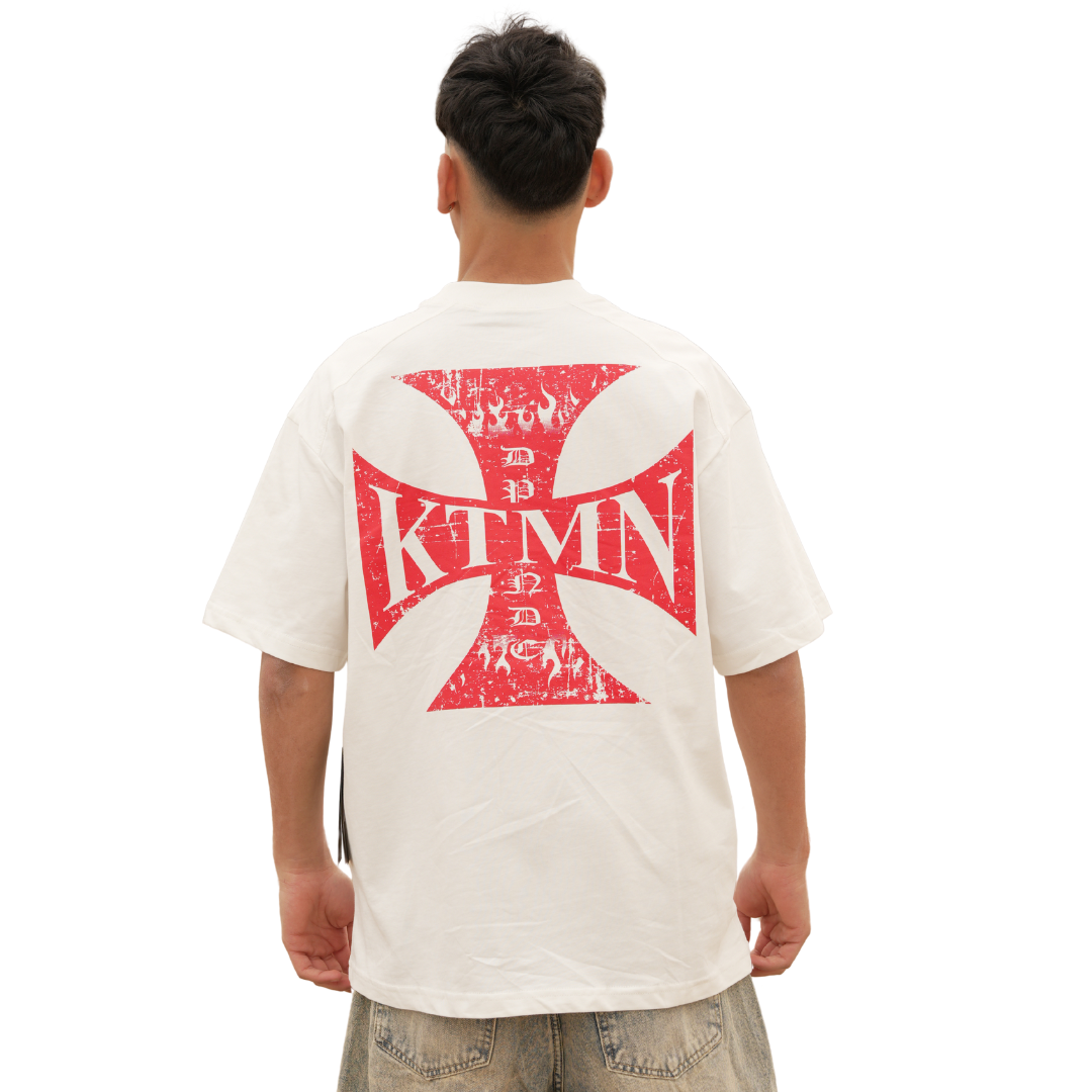 T-shirt bianca in cotone morbido con stampa grafica “KTMN” sul petto. Taglio regular e vestibilità comoda per un look urbano e contemporaneo. Perfetta da abbinare a jeans o pantaloni cargo per uno stile streetwear deciso.